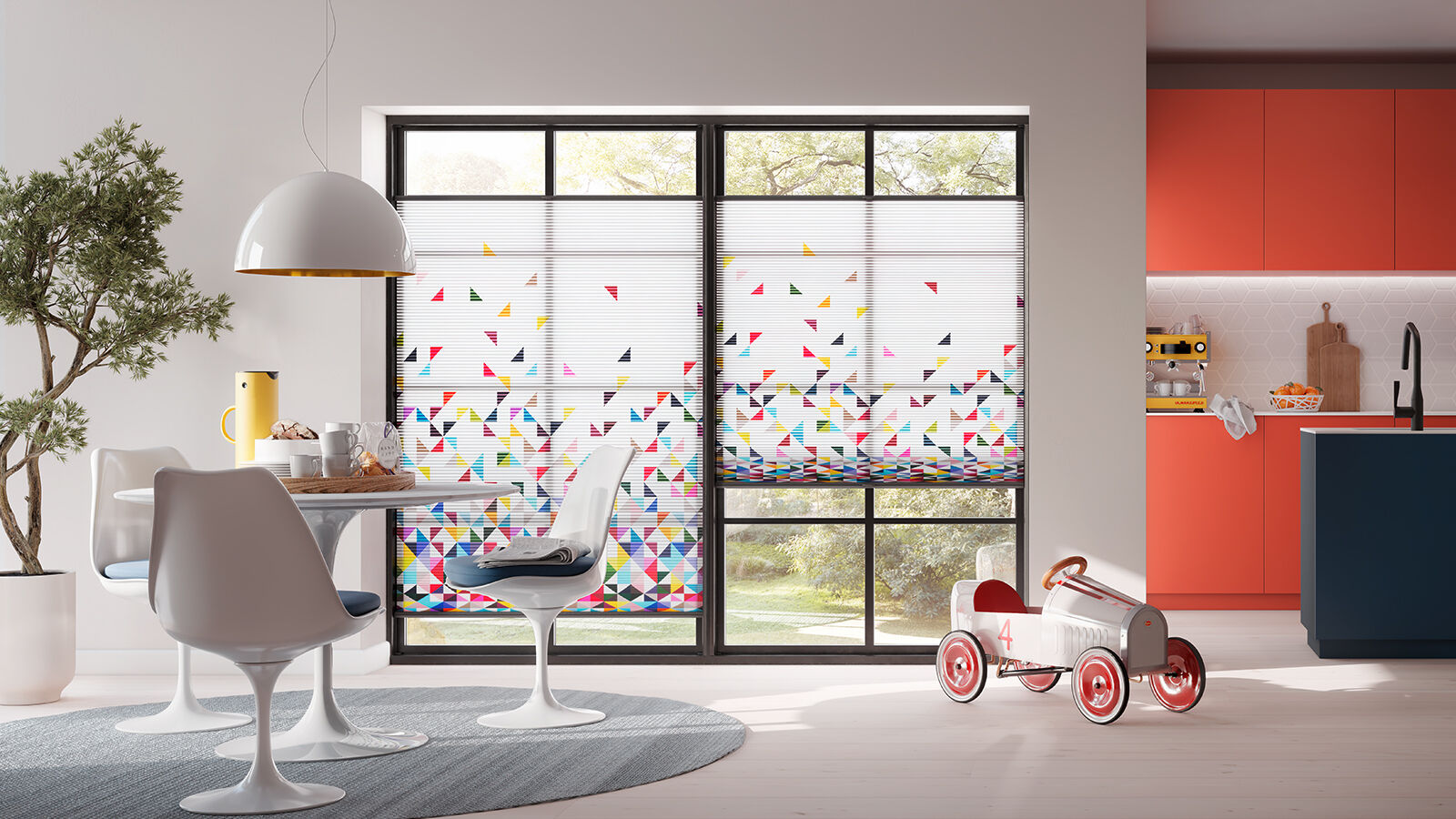 Innerhalb des Entwicklungsprozesses der beiden DUETTE® Kollektionen fiel die Entscheidung auf die jeweils vier signifikantesten Dessins. „Sie stehen für Lebensfreude pur, die uns jeden Morgen aufs Neue begrüßt“, sagt Christian Sieger. Auf den Naturphänomenen Erde, Wasser, Luft und Feuer basiert die poetische Kollektion Elements by sieger design, die mit vier symbolischen Dessins die Schönheit der Natur zelebriert. Geometrische und grafische Formen in kräftigen Farben stehen für Erde und Feuer, natürliche Motive in einer sanften Farbpalette für die Elemente Wasser und Luft. Die vier Dessins werden für jedes einzelne Fenster konfiguriert und anschließend maßgefertigt. Wenn Sonnenstrahlen auf den bedruckten DUETTE® Wabenplissee treffen, erscheinen die Farben noch schöner und intensiver.